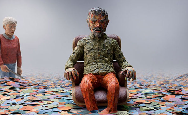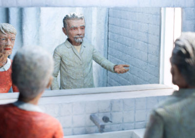 L’univers qui les entoure semble en mutation. Lentement, les meubles, les objets, des personnes perdent de leur réalisme.